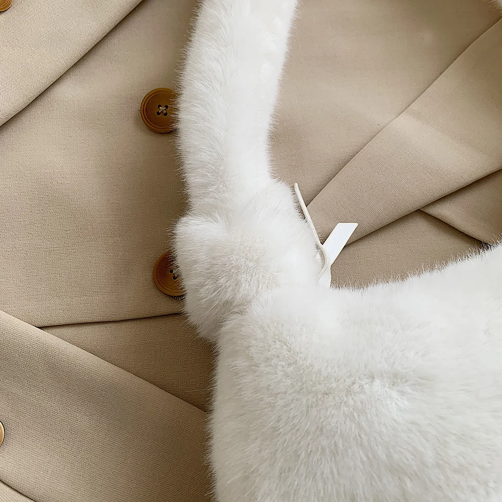 Fashion Solid Color Shoulder Underarm Bag Women Plush Soft Autumn Winter Fashion Fluffy Female Totes Handbag Lady Girl Travel Purse